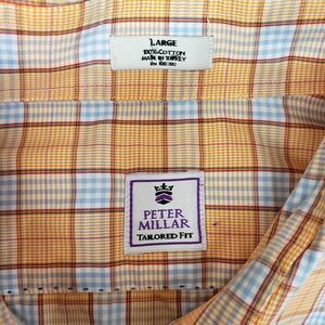 Peter Millar Tailored Fit Dress Shirt Mens Large Orange Blue Plaid Crown Crafted