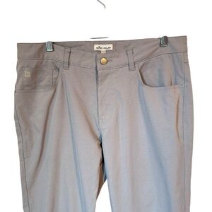 Elegant Peter Millar trousers. Features a distinctive gold button. Sophisticated taupe shade.