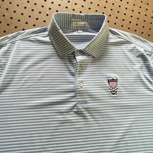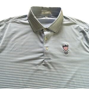 Peter Millar USGA 1894 Polo Shirt Crest Spandex Blend Striped Blue Large Men