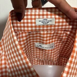 Classic orange gingham pattern. University of Texas Button-down style. Perfect for casual wear.