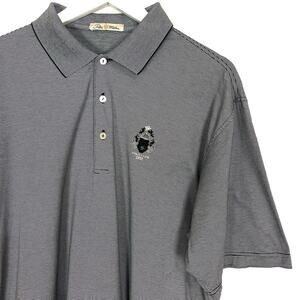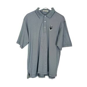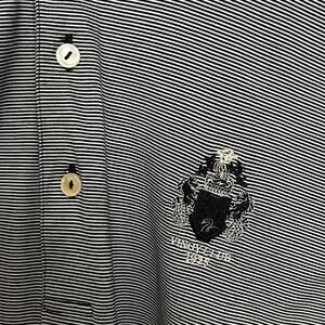 Black and white striped polo shirt with Vinoy Club logo on chest.