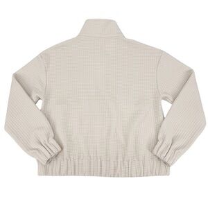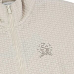 Peter Millar Waffle Knit Funnel Neck Zip Up Jacket. Ivory with full zip front. Lightweight with a soft touch for ultimate comfort and performance.