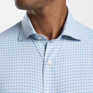 "This shirt offers remarkable comfort, with two-way stretch, moisture-wicking and easy-care benefits, styled in a classic gingham pattern."
