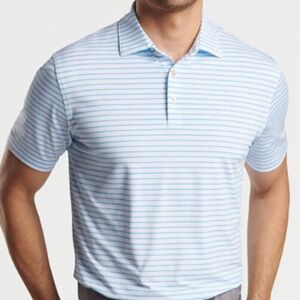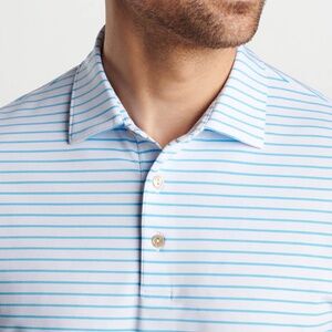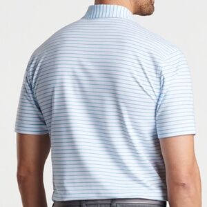 Peter Millar White Drum Performance Jersey Polo MS24EK08S Stripe Golf Blue