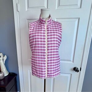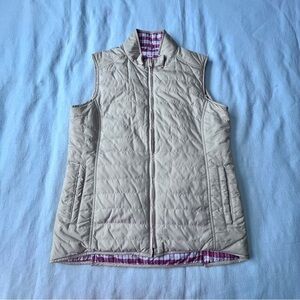 Peter Millar Women's Keenland Flora Reversible Puffer Vest Beige and Red Plaid M