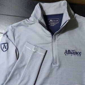 Peter Millar Women's Sugar Stripe Perth Layer 1/4 Zip Navy Blue/White MEDIUM