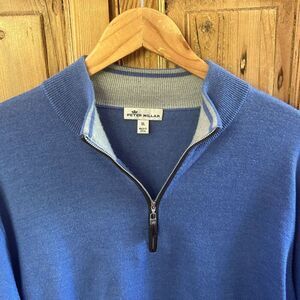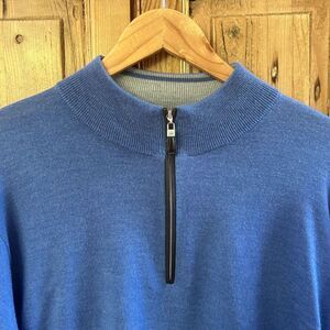 Peter Millar XL Sweater Men’s Blue 1/4 Zip Pullover Long Sleeve Merino Wool Silk