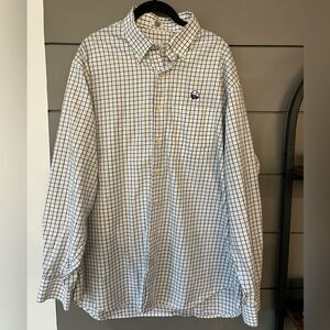 Peter Millar blue brown checkered plaid button up dress shirt size XL EUC
