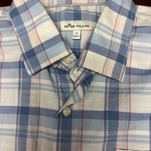 Peter Millar blue white pink plaid long sleeve button down shirt, size XL