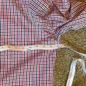 Peter Millar blue, red and white plaid button down shirt. 100% cotton. In excellent condition. Size XL. (E1) (check out my other listings for this brand)