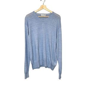 Peter Millar light blue merino wool and linen blend V-neck sweater size L