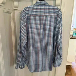 Peter Millar men’s button down blue plaid shirt cotton & SILK blend size large