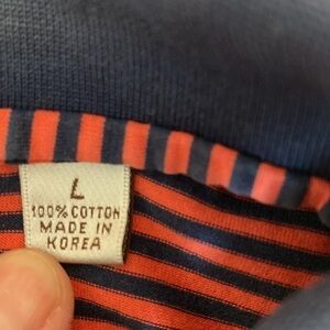 Peter Millar, men’s short sleeve shirt, size large rust colored navy stripes