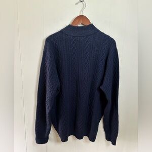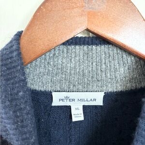Peter Millar navy blue 1/4 zip pullover sweater cable knit size XL yak wool