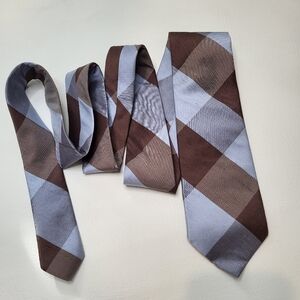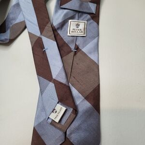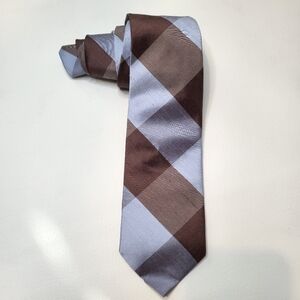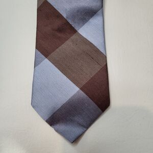 Peter Millar neck tie light blue brown plaid 100% shantung silk