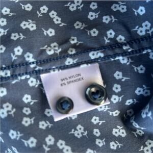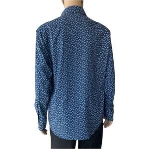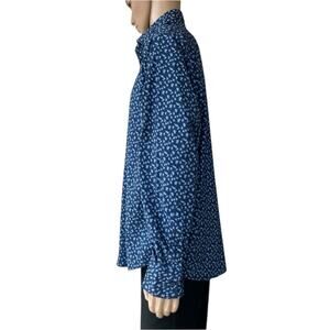 Peter Millar summer comfort button down Navy with light blue flowers.