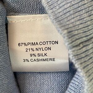 67-% cotton, 21% nylon, 9% silk 3% cashmere