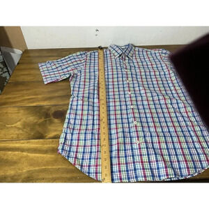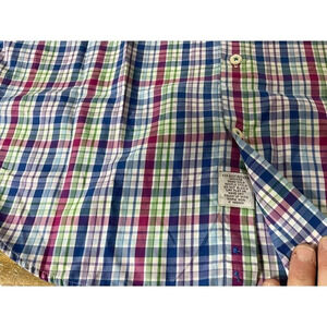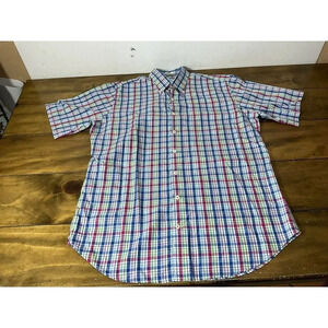 Peter Millar 100% Cotton Button-Up Shirt Colorful Plaid Short Sleeve Mens Large
