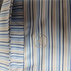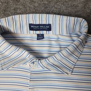 Peter Millar Casely Polo Shirt Mens Sz XL Blue Stripe Short Sleeve Crown Crafted Good Condition See Pictures For More Details.