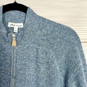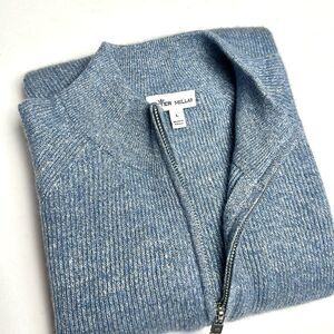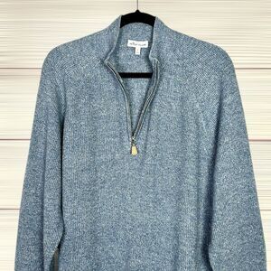 Peter Millar Crown Cashmere Linen Blend Sweater 1/4 Zip Rib Knit Blue size L
