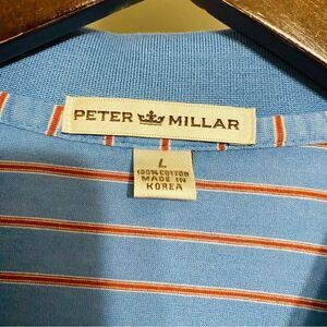 Peter Millar Mens Blue And Red Striped Polo Shirt Size Large