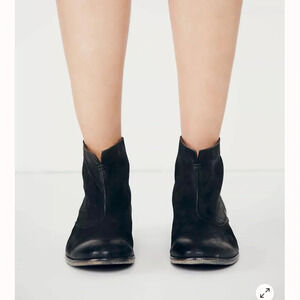 Peter Nappi Anthropologie black suede Carina ankle booties back zipper Sz 39