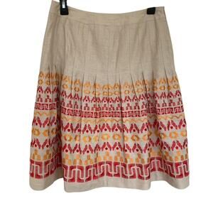 Peter Nygard Beige Linen Blend Pleated Embroidered Design Skirt - Size 8