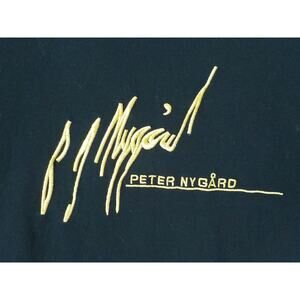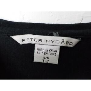 Peter Nygard Black V-neck T-Shirt w/ Gold Embroidery Signature Women size Small