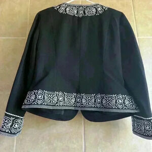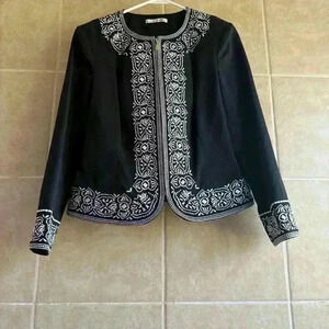 Peter Nygard Black & White Embroidered Petite Small/Medium Jacket