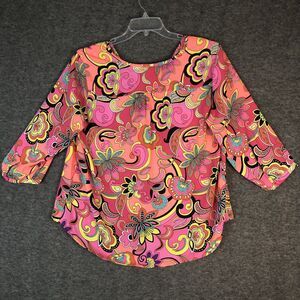 Peter Nygard Blouse Womens 16W Floral Stretch Boho High Low Lightweight V-Neck
