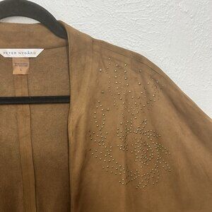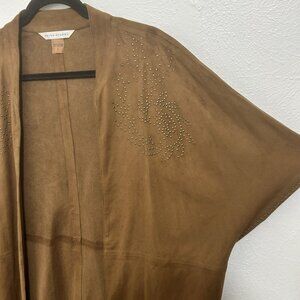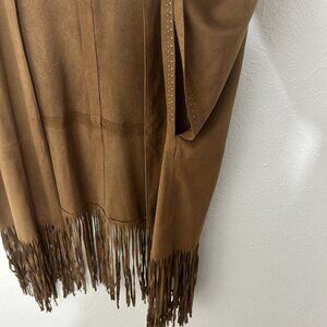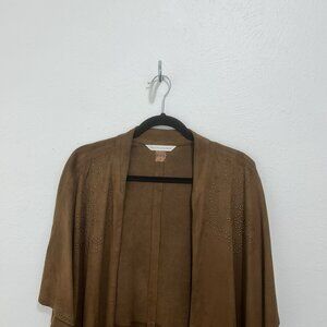Peter Nygard Brown Fringe Suede Feel Cardigan Boho Layering L Western Cowgirl