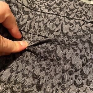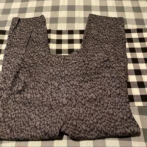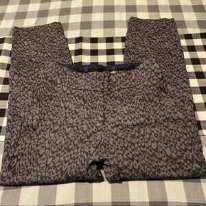 Women’s size 6 petite cropped pattern pants from Peter Nygard. Spandex blend. Gray with black pattern that reminds me of feathers. Pants are in very good used condition with no flaws or stains and minimal wash wear. Please see close-up pictures for condition details. Waist measures approx 27 in around when laid flat and unstretched, inseam measures approx 24.5 in, and rise measures approx 9 in.