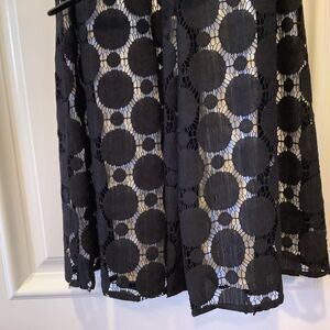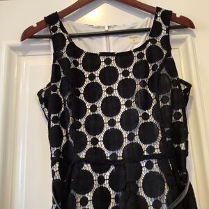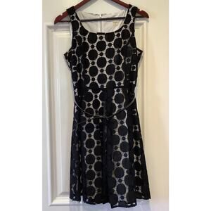 Peter Nygard Dress Size 6 White With Black Lace Circles Overlay Fit And Flare