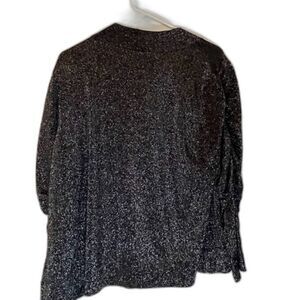 Peter Nygard Dressy Casual Black/Silver Glittery Ruched Sleeves Open Cardigan 1X