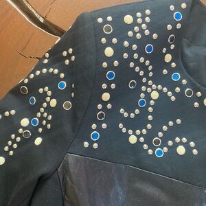 Peter Nygard Embellished Black Jacket with Faux leather / Size petite small