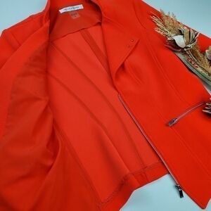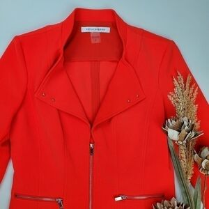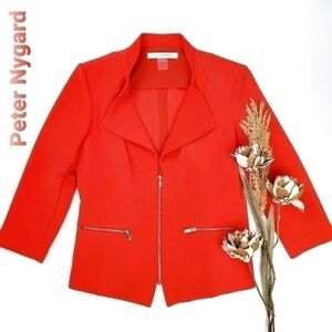 Peter Nygard Fire Red Orange Silver Zipper Coat 6