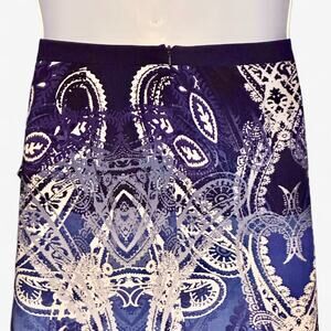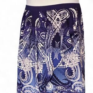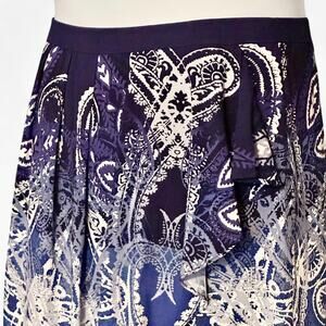 Peter Nygard Ruffled Wrap Skirt Size 12 Career Feminine Blue Black Zip Up Retro