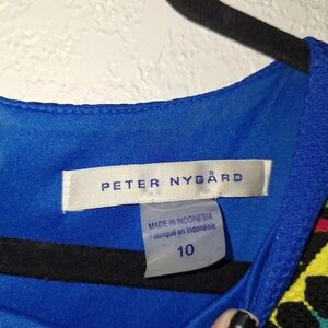 Peter Nygard Sz 10 Royal Blue Yellow Multi Color Lined Polyester Spandex Dress