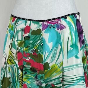 Peter Nygard White Teal Floral 100% Silk Cottage Vintage Skirt NWOT Size 10