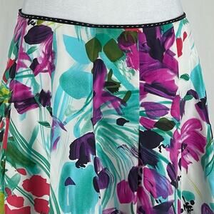 Peter Nygard White Teal Watercolor Floral 100% Silk Cottage Vintage Skirt NWOT