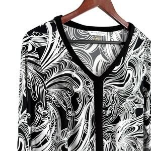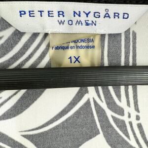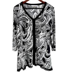 Peter Nygard Woman Plus Size 1X Black White Stretchy Blouse Shirt Top Artsy