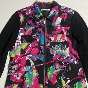 Peter Nygard Women's Black/Multi Abstract Full Zip Jacket