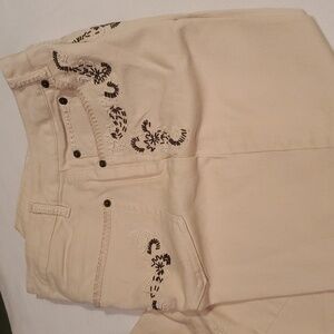 Peter Nygard Womens Luxe Cream Denim Embroidered Sz 10 x 25 Cropped Jeans