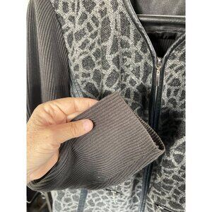 Peter Nygard Womens OX Animal Print Cardigan Sweater Jacket With Zipper & Pocket