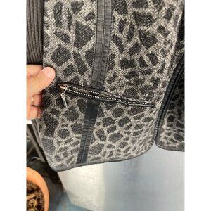Peter Nygard Womens OX Animal Print Cardigan Sweater Jacket With Zipper & Pocket