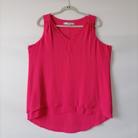 Peter Nygard Womens Pink V Neck Sleeveless Back Slit Blouse Top Plus Size 16W
