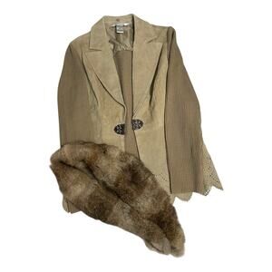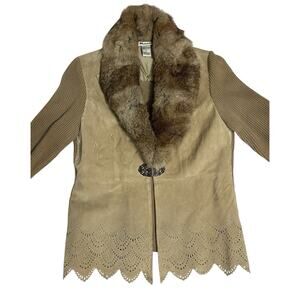 Peter Nygard Womens Sz PS Tan Suede Jacket Lapel Leather Removable Rabbit Fur