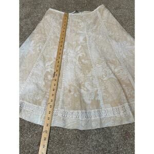 Peter Nygard midi skirt cream tan midi length side zip up cotton blend printed