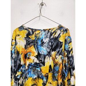 Peter Nygaro Womens Tunic Top 1X Blue Yellow Floral Stretch 3/4 Ruched Sleeve