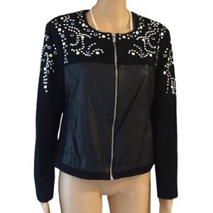 Peter Nygård Women's Petite Medium PM Black Faux Leather Zip up Lined Jacket